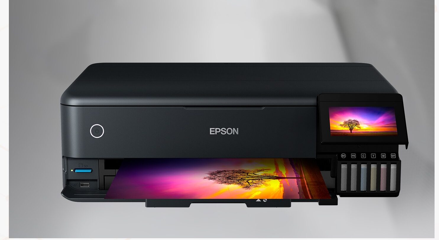 The Epson L8180 is an A3+ ink tank all-in-one for photos with 6-color Claria ET Premium ink, up to 25 ipm black, Wi-Fi, Ethernet, and 250-sheet tray. Prints up to 2,100 sheets per set.